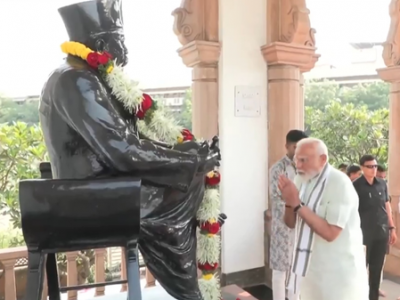 Nagpur, March 30 Prime Minister Narendra Modi on Sunday visited Dr Hedgewar Smruti Mandir in Maharashtra's Nagpur and paid floral tributes at memorials dedicated to Rashtriya Swayamsevak Sangh (RSS) founder Keshav Baliram Hedgewar, and second sarsanghchalak (chief) M. S. Golwalkar.
