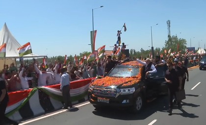 A large crowd gathered along the road to catch a glimpse of the Prime Minister as he waved back at them.