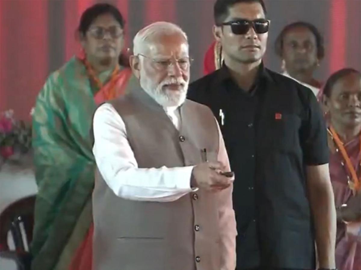 Varanasi (Uttar Pradesh) [India], April 28 : Prime Minister Narendra Modi on Tuesday inaugrated and laid the foundation stone of various development projects worth around Rs 6,350 crore during the Mahila Sammelan in Varanasi.