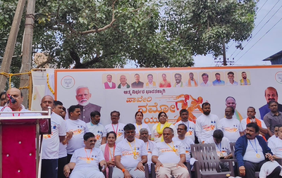 Haveri (Karnataka), Oct 11 Thousands of people participated in a belated celebration of Prime Minister Narendra Modi's 75th birthday in Haveri city of Karnataka on Saturday, led by former Chief Minister and BJP MP Basavaraj Bommai, where attendees pledged to build a self-reliant and drug-free India.