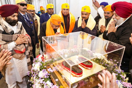 Patna, Dec 27 Amid the celebrations of the 359th Prakash Parv in Patna, Bihar Chief Minister Nitish Kumar visited Takht Sri Harimandir Ji Patna Sahib Gurdwara, where he bowed his head in reverence and prayed for the peace, prosperity, and well-being of the state.