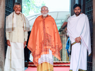 Temple priests and officials welcomed PM Modi, CM Naidu and Deputy CM at the main entrance of the temple. They participated in various rituals at the temple.