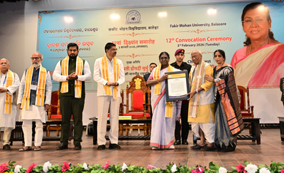 She expressed confidence that the Fakir Mohan University, through its academic vision and community engagement, will play a transformative role in this direction. The President was happy to note that the University gives importance to research and outreach programmes in addition to academic studies. She stated that the Balasore-Bhadrak region is famous for paddy, betel leaves, and fish.
