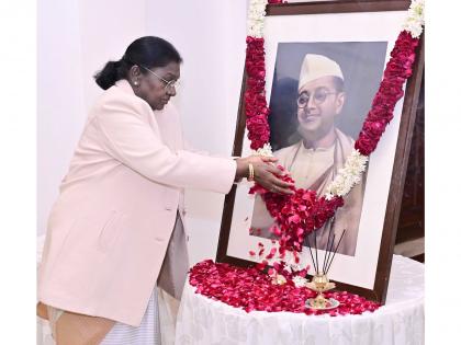 New Delhi [India], January 23 : President Droupadi Murmu paid floral tributes to Netaji Subhas Chandra Bose on his 129th birth anniversary, observed as Parakram Diwas, at Rashtrapati Bhavan on Friday.