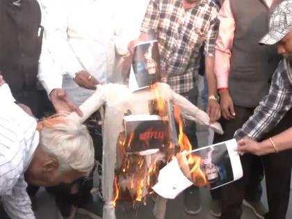 Prayagraj (Uttar Pradesh) [India], February 6 : Protests erupted across India on Friday against the Netflix film 'Ghooskhor Pandat', with demonstrators burning effigies of the producer, director and actors at Subhash Chowk in Prayagraj. Protesters also demanded a ban on the OTT platform.