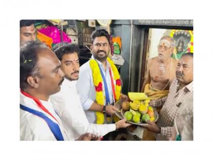 Puducherry: Latchiya Jananayaga Katchi founder Jose Charles Martin performs temple puja with party symbol "Watermelon"
