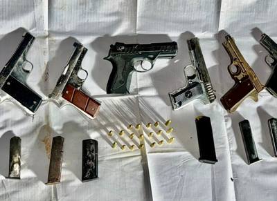 The recovered pistols include one PX5 pistol, one .30 bore pistol, four .32 bore pistols along with 19 cartridges.