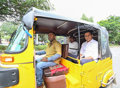 Rama Rao travelled in an autorickshaw to reach the BRS headquarters, Telangana Bhavan, while another senior party leader and former minister, T. Harish Rao, also travelled in an autorickshaw in the city to understand their problems.
