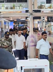 Rahul Gandhi arrived in Jaipur from Ahmedabad on Wednesday evening. At the Jaipur International Airport, he was received by Leader of the Opposition in the Rajasthan Assembly Tikaram Jully and Rajasthan Congress president Govind Singh Dotasra.
