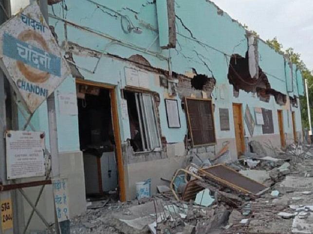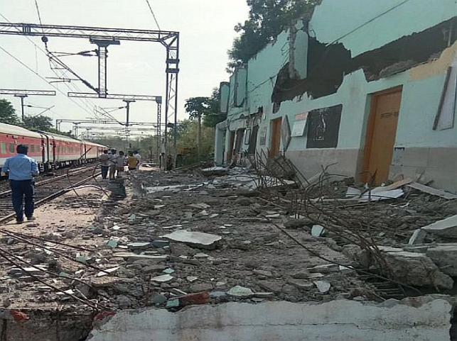 Railway station building collapses due to tremors felt by train speeding at 110 km per hour