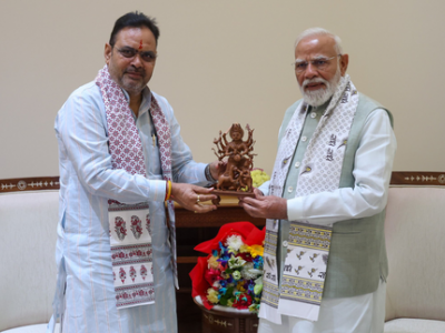 During the meeting, Chief Minister Sharma presented Prime Minister Modi with a sandalwood idol of Goddess Durga, crafted by Jaipur-based artisan Mohit Jangid.