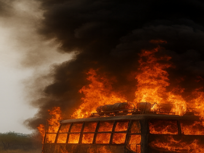 As flames engulfed the vehicle, panic spread among villagers, who rushed to remove children and livestock from the area fearing a possible explosion due to the diesel tank. The driver and conductor fled the scene shortly after the incident. Police have launched efforts to trace them. Fortunately, no passengers were onboard at the time.
