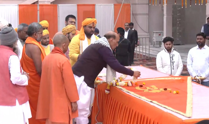 Defence Minister Rajnath Singh arrived in Ayodhya earlier in the day to participate in the Pratishtha Dwadashi programme. He was received by Chief Minister Yogi Adityanath at the Maharishi Valmiki International Airport, from where they travelled together to Hanuman Garhi and later to the Ram Janmabhoomi complex.