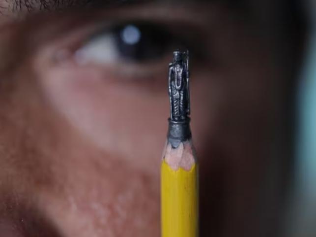 In Jaipur, a sculptor named Navratan Prajapati has created a miniature sculpture of Lord Rama on the tip of a pencil. The sculpture is just 1.3 centimeters long and depicts Rama with a bow in one hand and an arrow in the other. Prajapati told reporters that it took him about five days to create the sculpture. He is the first artist in Jaipur to create such a delicate work of art.