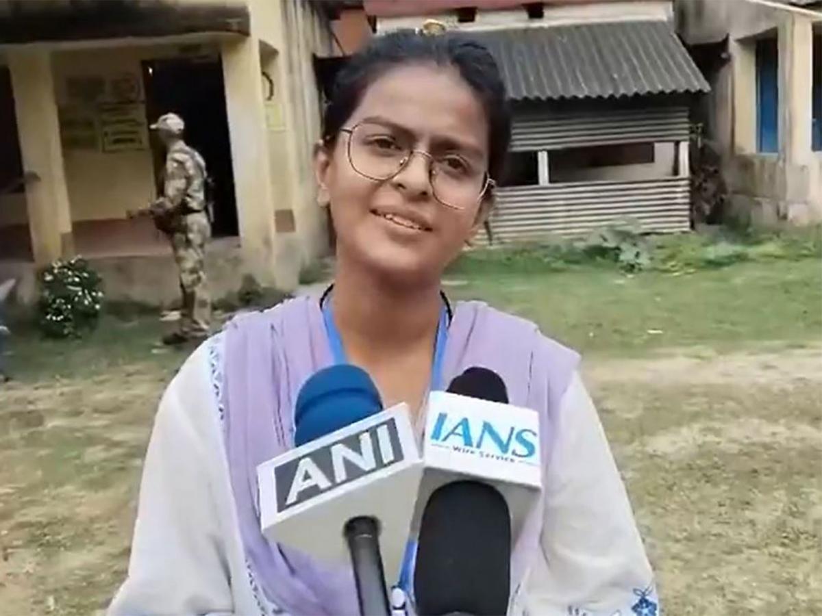 North 24 Parganas (West Bengal) [India], April 29 : Madhuparna Thakur, a representative of the Matua Thakur family and the Trinamool candidate for the Bagda constituency, cast her vote at a polling booth in Thakurnagar in North 24 Parganas as the polling for the second phase of the West Bengal elections is underway.