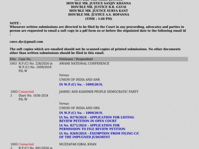 Review petitions challenging Supreme Court decision upholding the abrogation of Article 370 listed on Wednesday (May 1st). Petitions have ...