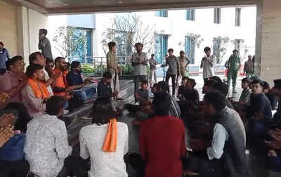After police intervention, several activists reportedly sat at the college entrance and chanted the Hanuman Chalisa.