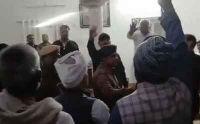 They raised slogans demanding that Sanjay Yadav be sent back to Haryana.