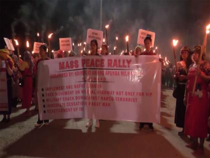 Imphal (Manipur) [India], April 21 : Road blockades marked the second day of the five-day total shutdown imposed by the Meira Paibi Lup (Women Torch Bearers) across Manipur on Monday, with normal life disrupted in several parts of the state.