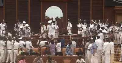 As the protest escalated, a group of opposition MLAs led by Anvar Sadath attempted to rush towards the Speaker’s dais and later tried to enter the Speaker’s chamber.