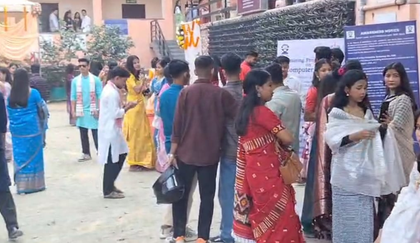 In Guwahati, the festive spirit was clearly visible as students thronged campuses wearing traditional attire such as Mekhela Sador and sarees, lending colour and grace to the celebrations.