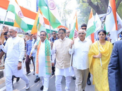 Saha said that “Today, we are not just participating in a padyatra, but are paying homage to the noble ideals of unity, courage, and nation-building.”