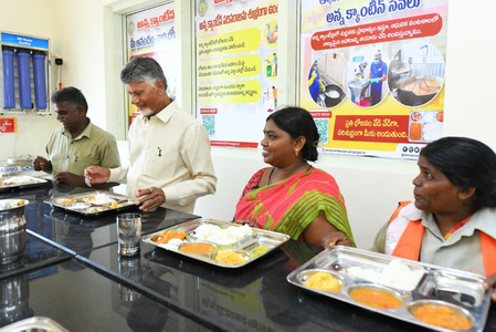 Engaging in conversation with the beneficiaries, the Chief Minister partook of his meal right there within the 'Anna Canteen' premises. He also inquired about the taste, hygiene, and quality of the food being served at the 'Anna Canteens.'