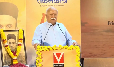 Bhagwat, speaking from the main stage where senior leaders, including Home Minister Amit Shah, Admiral (Retd) Devendra Kumar Joshi, the Lieutenant Governor of Andaman and Nicobar Islands and Maharashtra Minister Ashish Shelar were present, recalled Savarkar’s unparalleled contributions spanning literature, poetry, law, theatre and social reform.
