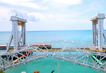 The newly constructed Pamban Bridge, connecting Rameswaram with the mainland, is India’s first vertical lift railway sea bridge. Built at a cost exceeding Rs. 700 crore, the 2.07 km structure includes a 72.5-metre vertical lift section that can rise 17 metres, allowing ships to pass safely without halting train movement.