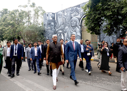 New Delhi, Feb 18 Union Minister of Culture and Tourism Gajendra Singh Shekhawat joined Spanish President Pedro Sanchez for the dedication of a mural created by Spanish artist Suso Manuel Pinto Gracia in Delhi on Wednesday.