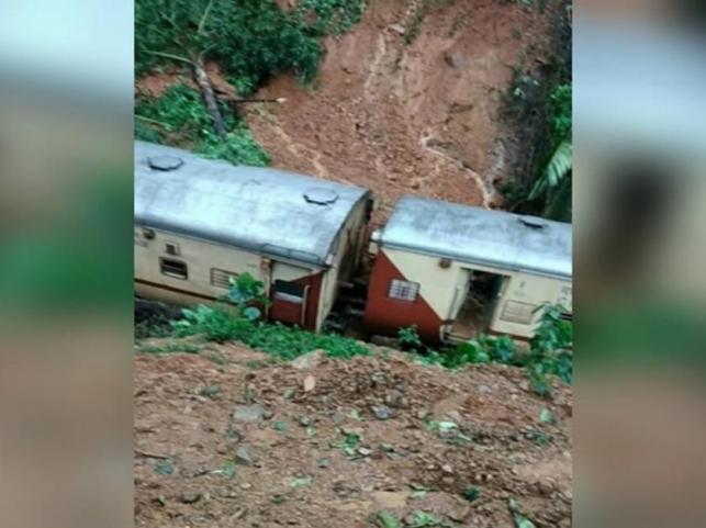 Landslide n derailment of train No. 01134 between sonarlim & Dudhsagar Goa at Km 39/800 No injury/casualties reported pic.twitter.com/kDNvUKa1jw