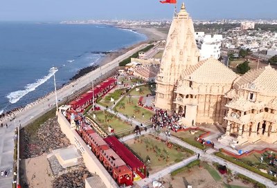 A special train from Rajkot arrived at the Somnath Railway Station on Thursday, and saw the entire railway premises resonating with thunderous chants of 'Har Har Bhole' and 'Jai Somnath'.