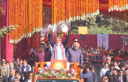 Somnath (Gujarat), Jan 11 Prime Minister Narendra Modi participated in the 'Shaurya Yatra' at Somnath Temple as part of the Somnath Swabhiman Parv in Gujarat on Sunday. He witnessed cultural performances from artists across the country.