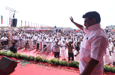 The rally marked a key moment in the DMK’s intensified campaign in southern Tamil Nadu ahead of the Assembly elections.