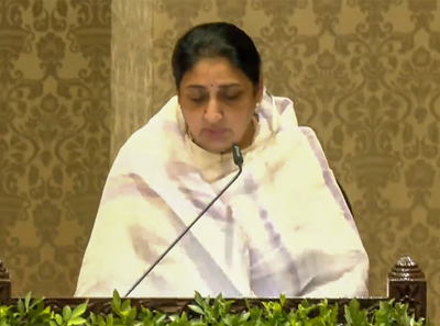 Governor Acharya Devvrat administered the oath of office and secrecy to Sunetra Pawar at a simple ceremony held at Lok Bhavan in view of the recent tragedy. Chief Minister Devendra Fadnavis, Deputy CM Eknath Shinde, ministers, and legislators were present on the occasion.