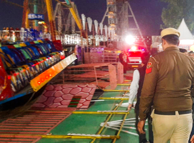 A giant swing collapsed at the Surajkund mela in Faridabad, killing Inspector Jagdish Prasad during rescue operations and injuring 12 people. A case has been registered against Mohammad Shakir, proprietor of Himachal Fun Care Company, for culpable homicide not amounting to murder and other relevant sections.