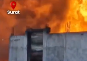 A massive fire broke out suddenly at Shri Balaji Chemical Factory located in Makhiga village of Surat district, Gujarat, triggering panic in the area. The blaze spread with alarming speed, engulfing the entire factory premises within minutes. Since the unit stored large quantities of chemicals, the fire intensified rapidly and took a dangerous form. Towering flames and thick smoke were visible from a considerable distance. More than ten fire brigade vehicles were rushed to the spot, and firefighters are working continuously to bring the situation under control amid challenging conditions.