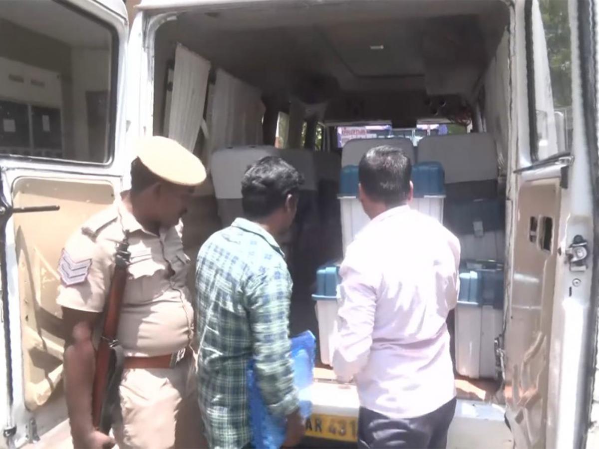Madurai (Tamil Nadu) [India], April 22 : The process of dispatching Electronic Voting Machines (EVMs) and other polling materials to designated booths has commenced in Madurai ahead of the Tamil Nadu Legislative Assembly elections, scheduled to be held in a single phase on April 23.