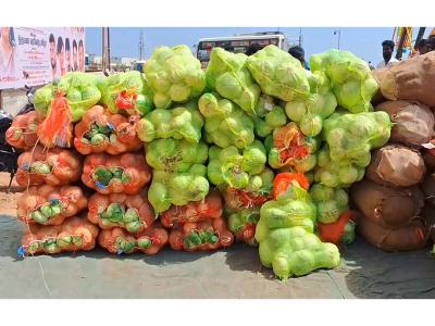 The donation included 18 tonnes of vegetables, 100 sacks of rice, essential grocery items required for large-scale cooking, and 7,500 bottles of drinking water.