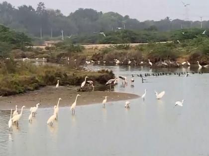 Thoothukudi (Tamil Nadu) [India], January 20 : The coastal area near Thoothukudi Harbour has turned into a busy hub of bird activity, with large flocks of water birds gathering in the estuary area of Thoothukudi Harbour Beach.