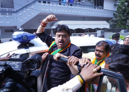Ramchander Rao, who was placed under house arrest since Saturday night, tried to leave for Banswada but was stopped and taken into custody by the police.