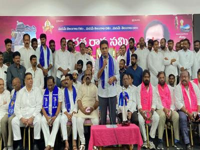 On the occasion of Ambedkar Jayanti, BRS working president K. T. Rama Rao also paid floral tributes to Bharat Ratna Dr. B. R. Ambedkar's portrait at Telangana Bhavan.