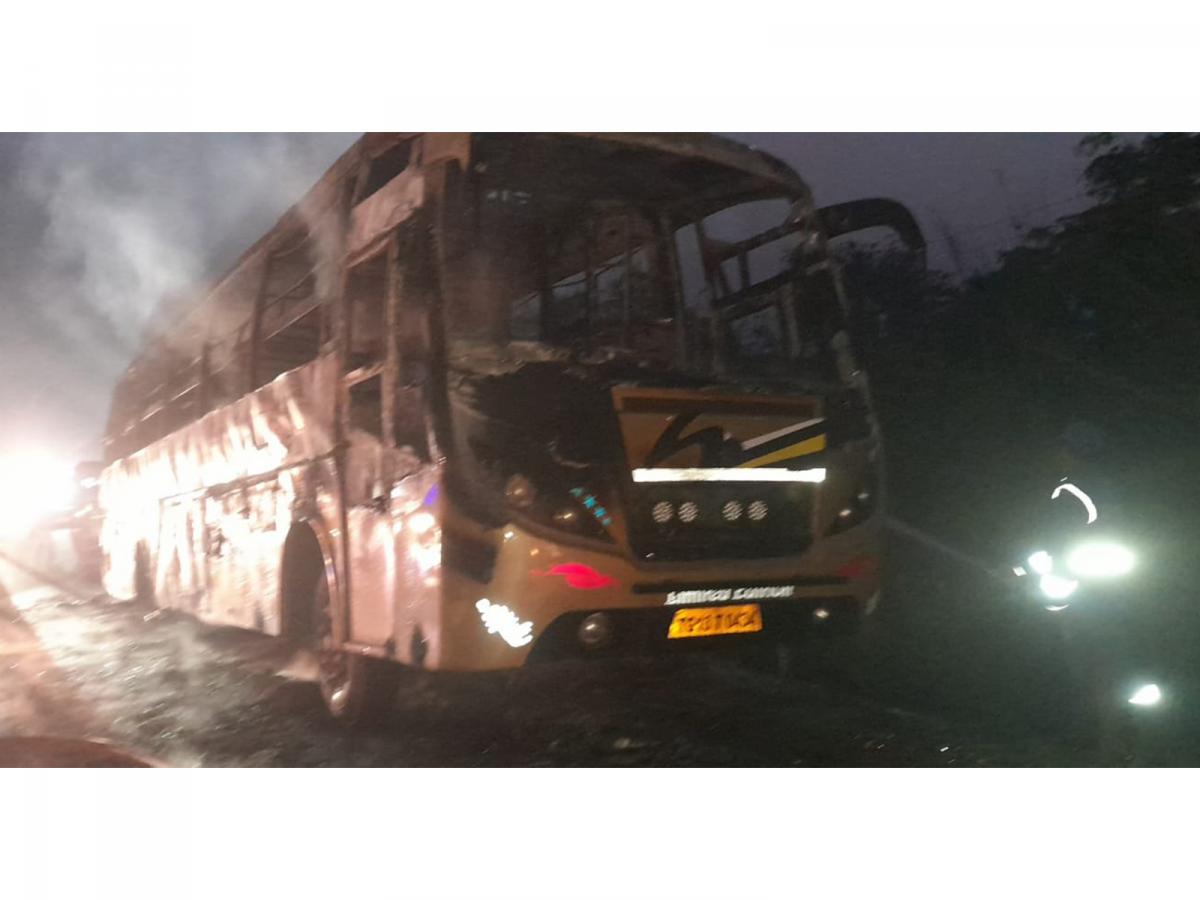 Medak (Telangana) [India], April 27 : A private bus travelling from Medak to Hyderabad caught fire in the early hours of Monday, officials said.