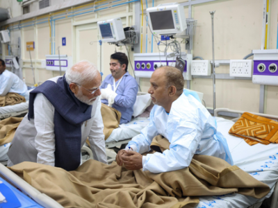PM Modi arrived in the national capital on Wednesday afternoon after concluding his two-day visit to Bhutan. After landing, he went straight to LNJP Hospital, where he met and interacted with the injured, wishing them a speedy recovery.