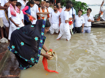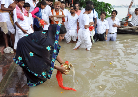 Bharatiya Janata Party (BJP) leaders, meanwhile, offered ‘tarpan’ at the Baghbazar ghat to all party workers who were killed in political violence in the state over the past few years. State BJP president Samik Bhattacharya took a dip in the river Hooghly and offered prayers along with other party workers.