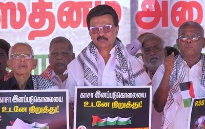 Referring to a recent attack where 45 people waiting for food supplies were killed, Stalin said such incidents had deeply distressed the world. “Volunteers from 47 countries carrying milk powder, food and relief materials were arrested. Can we remain silent spectators without condemning Israel’s actions, which violate international law?” he asked.