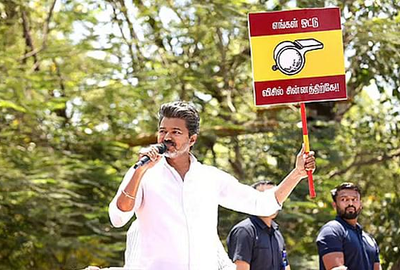 Concluding his speech, Vijay urged voters to trust him, assuring that his promises were genuine and not misleading, and appealed for support to bring what he described as a "whistle revolution" in Tamil Nadu politics.