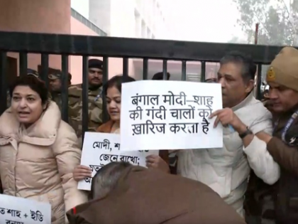 New Delhi, Jan 9 Eight Trinamool Congress MPs staged a protest on Friday outside the office of Union Home Minister Amit Shah in the national capital. The MPs held placards reading, “Bengal rejects Modi-Shah’s dirty politics”, and accused the Centre of targeting the opposition through central agencies.