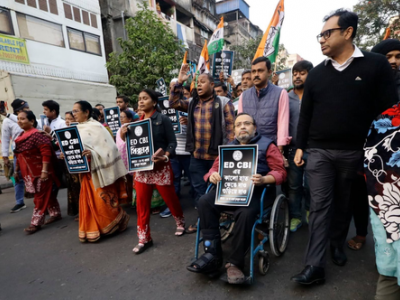 At Dinendra Street in Maniktala area of north Kolkata, Trinamool spokesperson Kunal Ghosh participated in a procession while seated in a wheelchair. He was seen holding a placard criticising the ED and the CBI. Speaking to mediapersons during the protest, Ghosh alleged that central agencies were being used to target the Trinamool Congress ahead of the Assembly elections.