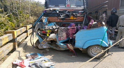Agartala, Jan 30 At least four people, including two women, were killed and two others critically injured after a 12-wheeler goods truck collided head-on with a passenger auto-rickshaw on the Assam-Agartala National Highway in Tripura’s Unakoti district on Friday, police said.